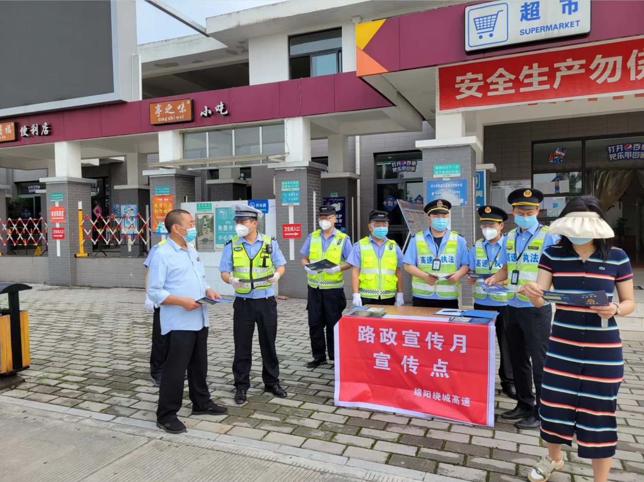 為進(jìn)一步加強(qiáng)疫情防控常態(tài)化形勢(shì)下高速公路路政管理服務(wù)政策宣傳,強(qiáng)化隊(duì)伍建設(shè),增強(qiáng)社會(huì)公眾共治意識(shí),5月10日上午,綿陽(yáng)繞城高速公路聯(lián)合高速交通執(zhí)法第二支隊(duì)十五大隊(duì)及高速公安二分局六大隊(duì)在綿陽(yáng)南服務(wù)區(qū)、豐谷收費(fèi)站、豐谷鎮(zhèn)開(kāi)展了以“守護(hù)公路安全,爭(zhēng)當(dāng)服務(wù)先鋒”為主題的“路政宣傳月”集中宣傳活動(dòng)。