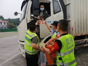 在綿陽南服務(wù)區(qū),黨員志愿者積極為駕乘人員提供食品、飲水,耐心宣傳疫情防控知識,溫馨提醒駕乘人員做好佩戴口罩,亮碼掃碼,測量體溫,保持一米線等防護(hù)措施。