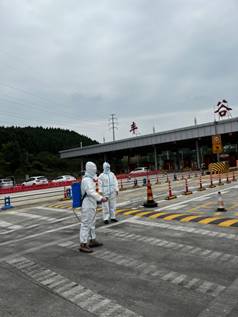 在收費(fèi)站,黨員志愿者積極主動(dòng)配合屬地政府開展疫情防控工作,不間斷開展場所消殺,疏導(dǎo)出站車輛,疏散滯留人員,清掃環(huán)境衛(wèi)生。