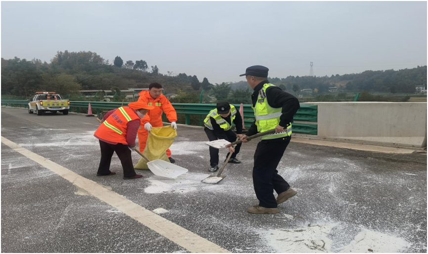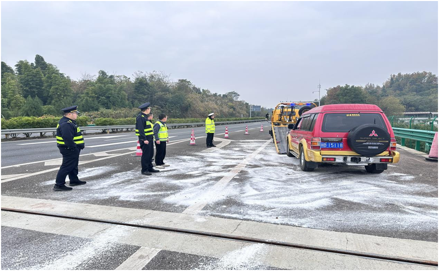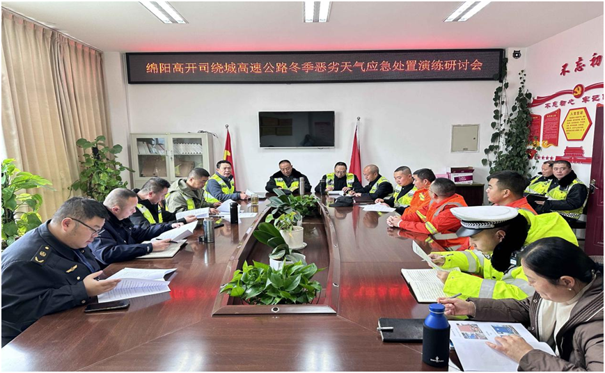 為認(rèn)真貫徹習(xí)近平總書記關(guān)于低溫雨雪冰凍災(zāi)害防范應(yīng)對工作的重要指示批示精神,落實省市、市國資委、省高管局、交發(fā)集團(tuán)等上級部門關(guān)于今冬明春惡劣天氣安全保障工作部署,有力保障低溫、雨雪、冰凍、大霧等惡劣天氣情況下高速公路運營安全暢通,12月11日上午,高開司聯(lián)合省交通執(zhí)法二支隊十五大隊、省高速公安二分局六大隊、綿陽路橋公司、銀發(fā)救援公司等協(xié)作單位開展冬季惡劣天氣應(yīng)急處置演練。